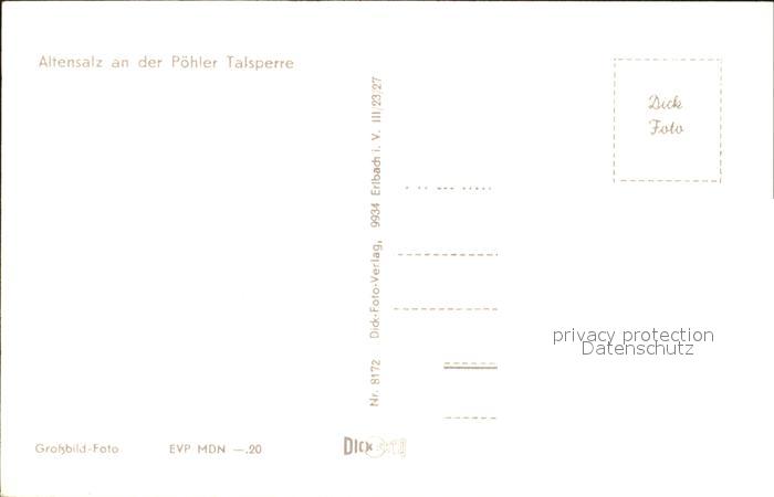 72387171 Altensalz an der Poehler Talsperre postalisch nicht gelaufen Erhaltung siehe scans KatCode: 11110014178410