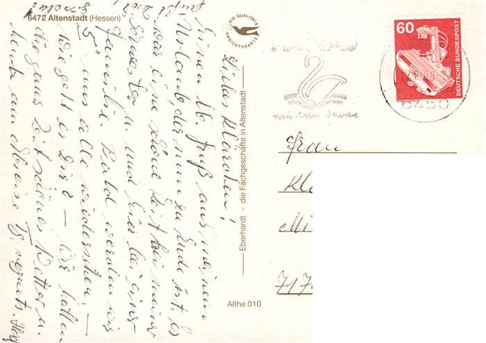 73876253 alte Postkarte Altenstadt Hessen Kloster Engelthal Schloss Hoechst Vogelsbergstrasse Altenstaedter Weinstuebchen postalisch gelaufen Fliegeraufnahme Erhaltung siehe scans [WerneD78] KatCode: 11110006440001