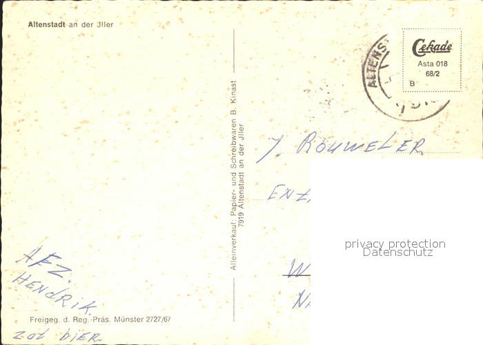72304176 alte Postkarte Altenstadt Iller Fliegeraufnahme postalisch gelaufen Erhaltung siehe scans KatCode: 11110009775111