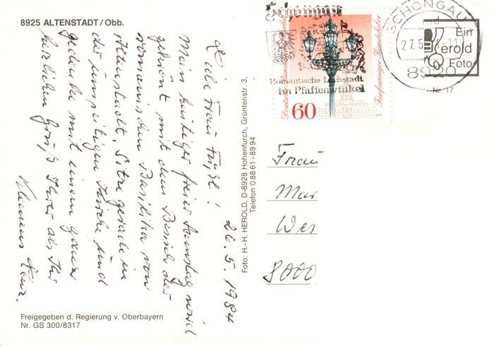 73883940 alte Postkarte Altenstadt Oberbayern Fliegeraufnahme postalisch gelaufen Erhaltung siehe scans [WerneD78] KatCode: 11110009190111