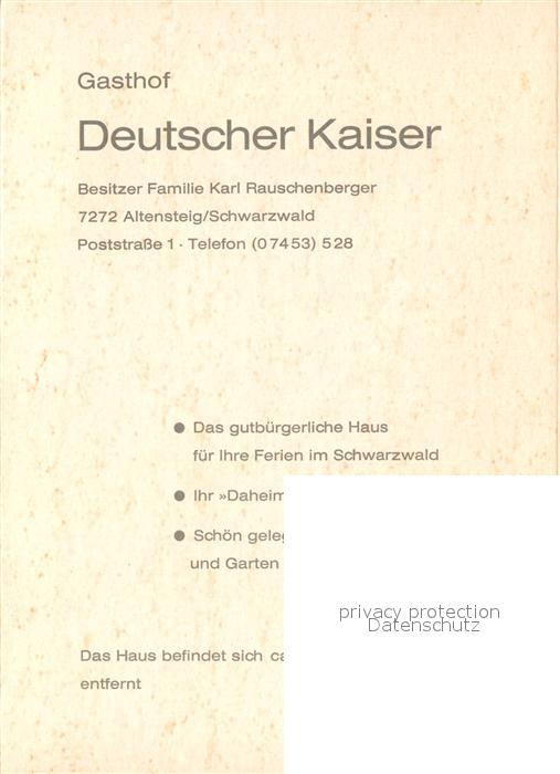 73099070 Altensteig Schwarzwald Gasthaus Deutscher Kaiser postalisch nicht gelaufen Werbekarte (keine Postkarte) Erhaltung siehe scans [KathaD81] KatCode: 11110008235006