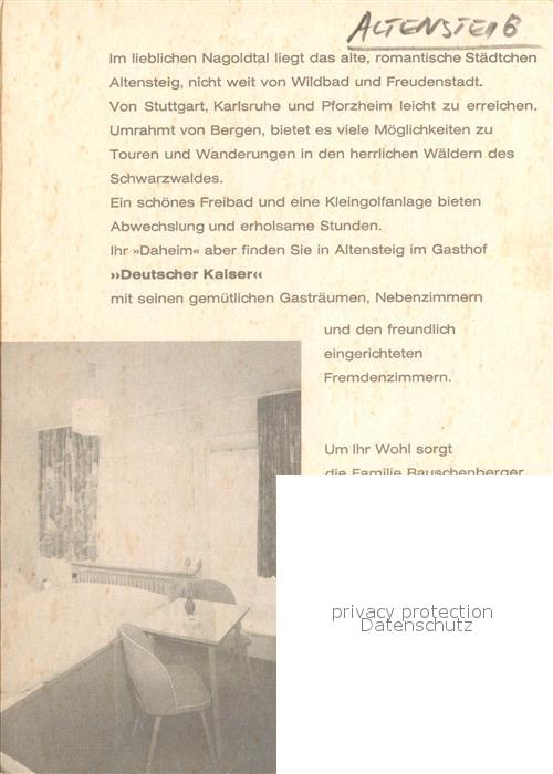73099110 Altensteig Schwarzwald Gasthof Deutscher Kaiser postalisch nicht gelaufen Werbekarte (keine Postkarte) Erhaltung siehe scans [KathaD81] KatCode: 11110008235006