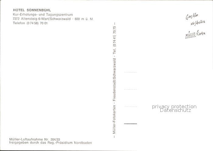 72056102 Altensteig Schwarzwald Hotel Sonnenbuehl Fliegeraufnahme postalisch nicht gelaufen Erhaltung siehe scans KatCode: 11110008235006