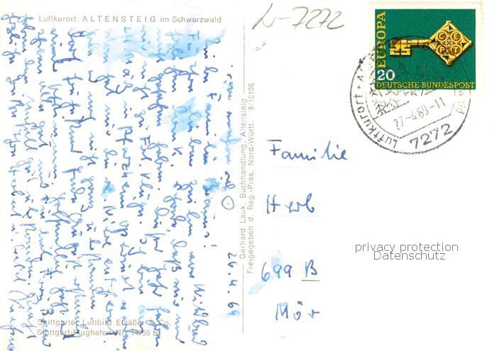 73858235 alte Postkarte Altensteig Schwarzwald Panorama Luftkurort postalisch gelaufen Fliegeraufnahme Erhaltung siehe scans [FriedD77] KatCode: 11110008235006