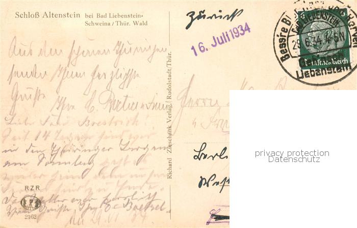 73817241 alte Postkarte Altenstein Bad Liebenstein Schloss postalisch gelaufen Erhaltung siehe scans [FriedD77] KatCode: 11110016063002
