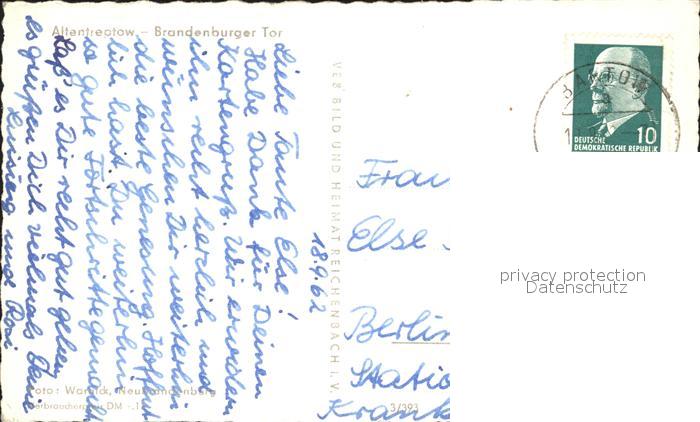 72007059 alte Postkarte Altentreptow Brandenburger Tor postalisch gelaufen Erhaltung siehe scans KatCode: 11110013052003