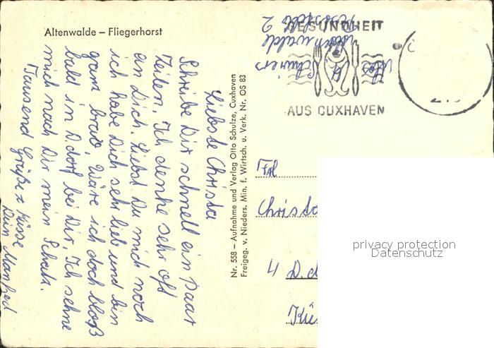 72015996 alte Postkarte Altenwalde Fliegeraufnahme Fliegerhorst postalisch gelaufen Erhaltung siehe scans KatCode: 11110003352011