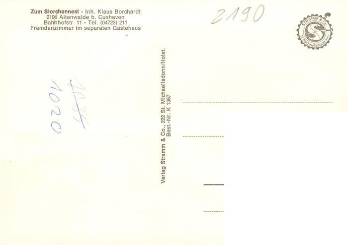 73896494 Altenwalde Hotel zum Storchennest Restaurant Bar postalisch nicht gelaufen Erhaltung siehe scans [FriedD77] KatCode: 11110003352011