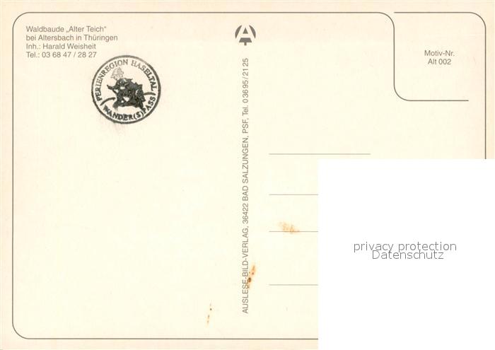 73654747 Altersbach Schmalkalden Waldbaude Alter Teich Gastraum Biergarten postalisch nicht gelaufen Erhaltung siehe scans [FriedD77] KatCode: 11110016066001