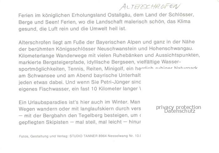 74085173 Alterschrofen Schwangau Bayern Hotel Pension Waldmann postalisch nicht gelaufen Werbekarte (keine Postkarte) Erhaltung siehe scans [WerneD78] KatCode: 11110009777169