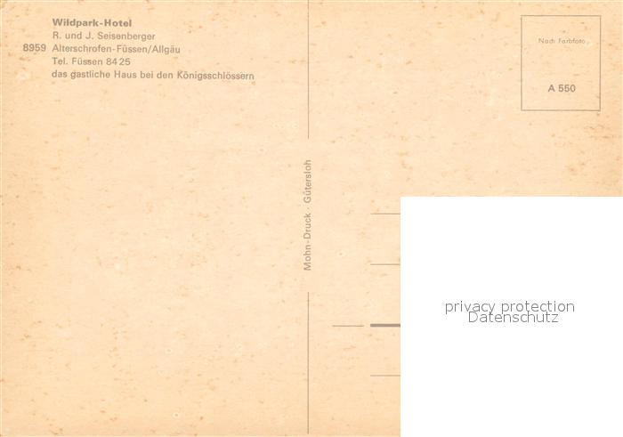 73652466 Alterschrofen Wildpark Hotel Allgaeuer Alpen postalisch nicht gelaufen Erhaltung siehe scans [FriedD77] KatCode: 11110009777169