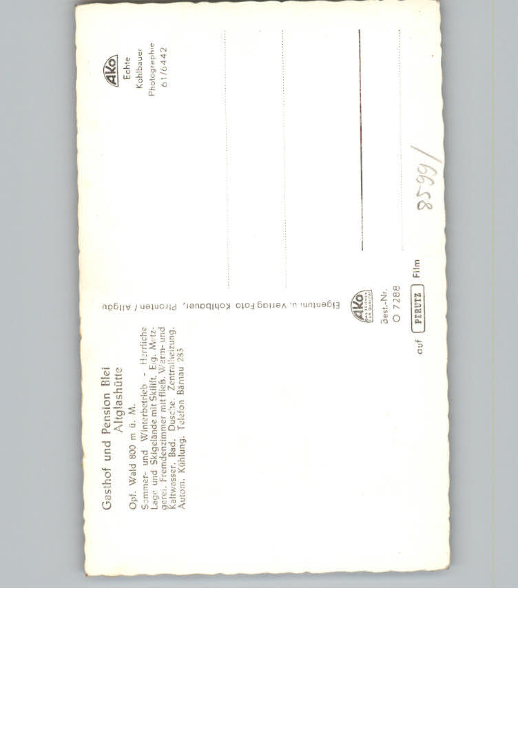 31163887 Altglashuette Oberpfalz Gasthof Pension Blei postalisch nicht gelaufen KatCode: 11110009377112