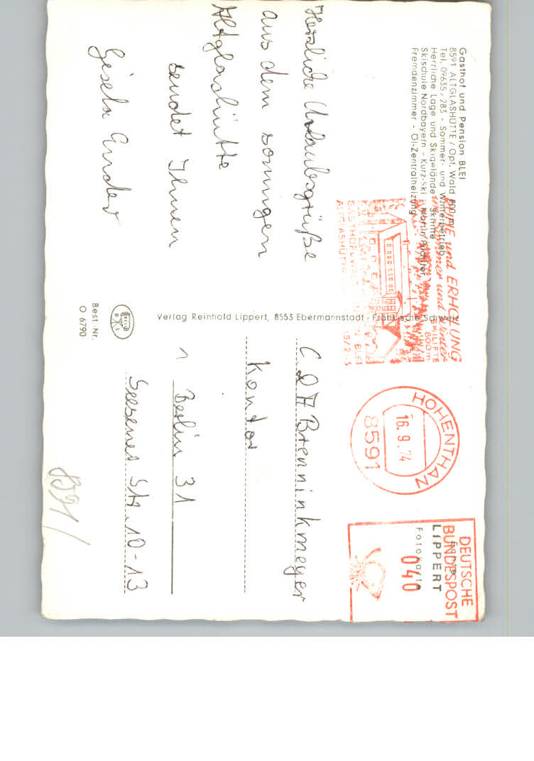 31163002 Altglashuette Oberpfalz Gasthof – Pension Blei postalisch nicht gelaufen KatCode: 11110009377112