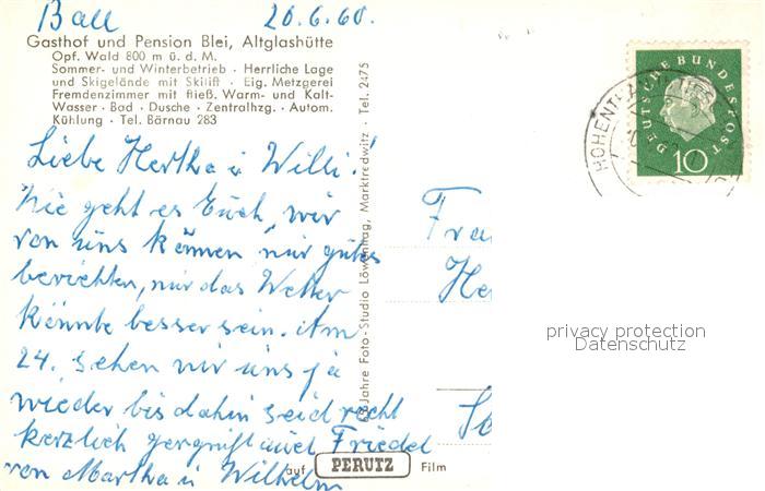 73595622 alte Postkarte Altglashuette Oberpfalz Gasthof Pension Blei im Wald postalisch gelaufen Erhaltung siehe scans [FriedD77] KatCode: 11110009377112