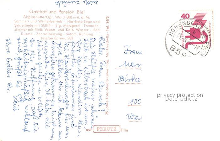 72978099 alte Postkarte Altglashuette Oberpfalz Gasthof Pension Blei Ruine Flossenbuerg Waldnaabquelle Kapelle postalisch gelaufen Erhaltung siehe scans [FriedD77] KatCode: 11110009377112