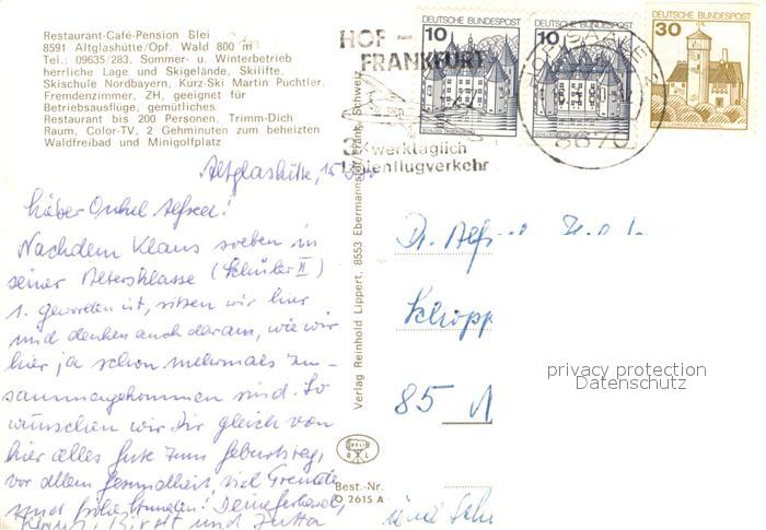 73634448 alte Postkarte Altglashuette Oberpfalz Restaurant Cafe Pension Blei Winterlandschaft postalisch gelaufen Erhaltung siehe scans [FriedD77] KatCode: 11110009377112