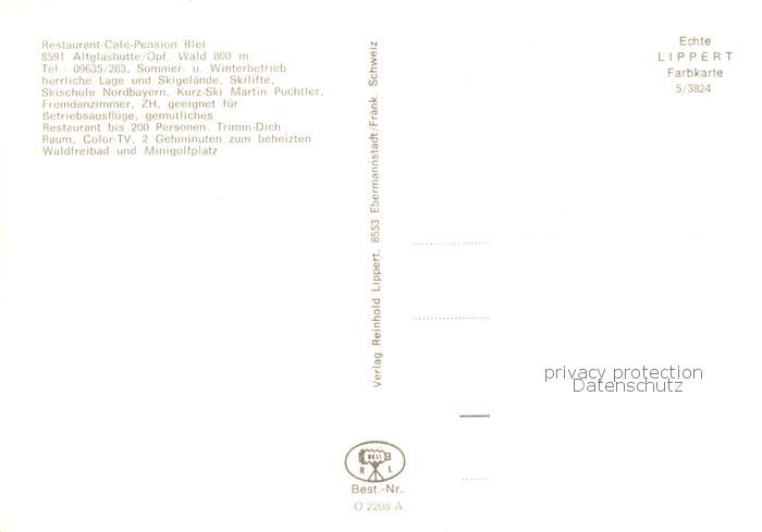 73846110 Altglashuette Oberpfalz Restaurant Cafe Pension Blei postalisch nicht gelaufen Erhaltung siehe scans [WerneD78] KatCode: 11110009377112