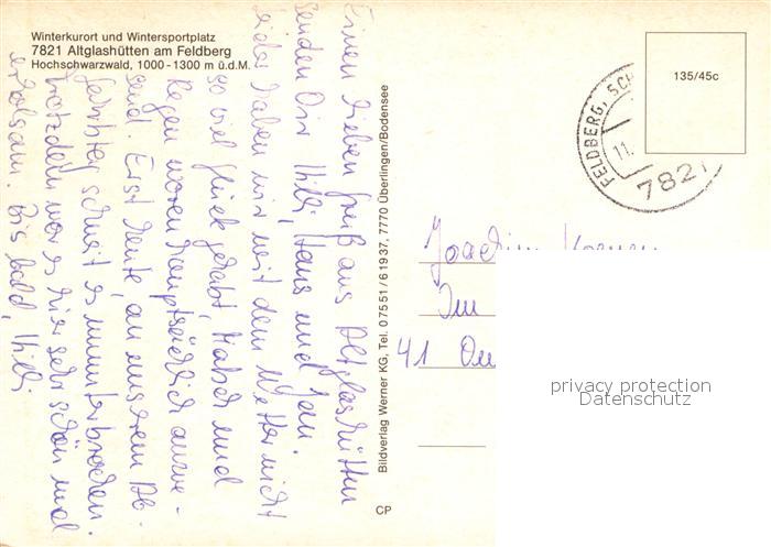 73012297 alte Postkarte Altglashuette Schwarzwald Fliegeraufnahme Winter postalisch gelaufen Erhaltung siehe scans [KathaD81] KatCode: 11110008315094