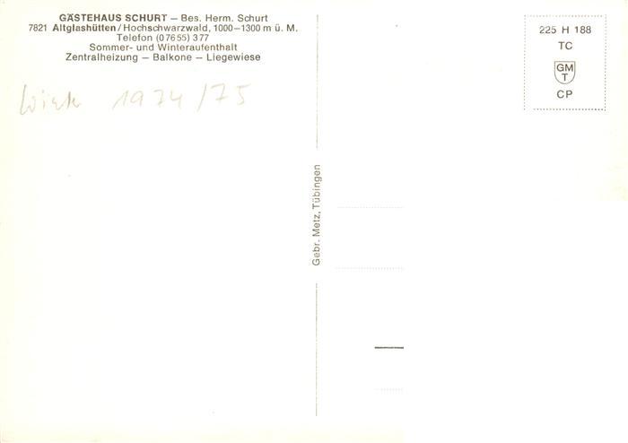 73896450 Altglashuette Schwarzwald Gaestehaus Schurt postalisch nicht gelaufen Erhaltung siehe scans [WerneD78] KatCode: 11110008315094