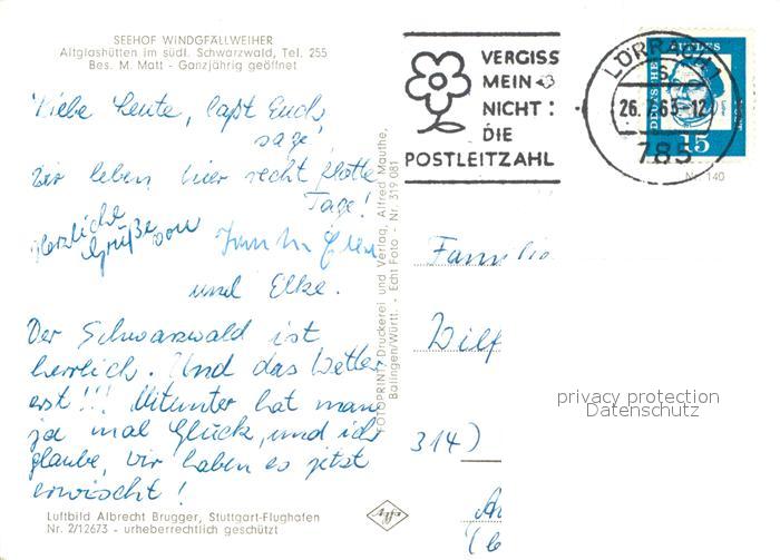72956020 alte Postkarte Altglashuette Schwarzwald Seehof Windgfaellweiher Fliegeraufnahme postalisch gelaufen Erhaltung siehe scans [PaolaD17] KatCode: 11110008315094