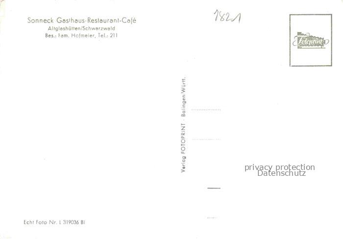 74016877 Altglashuetten Feldberg Schwarzwald Gasthaus Sonneck postalisch nicht gelaufen Erhaltung siehe scans [WerneD78] KatCode: 11110008315037