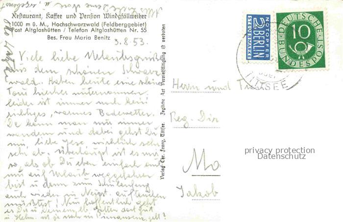 74064033 alte Postkarte Altglashuetten Feldberg Schwarzwald Windgfaellweiher Panorama postalisch gelaufen Erhaltung siehe scans [WerneD78] KatCode: 11110008315037