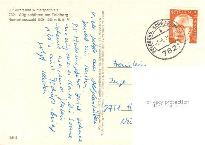 73689551 alte Postkarte Altglashuetten Fliegeraufnahme mit Feldberg postalisch gelaufen Erhaltung siehe scans [WerneD78] KatCode: 11110008315037