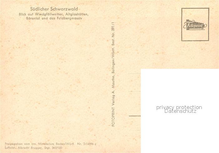 73164956 Altglashuetten Fliegeraufnahme mit Windgfaellweiher Baerenral und Feldbergmassiv postalisch nicht gelaufen Erhaltung siehe scans [WerneD78] KatCode: 11110008315037