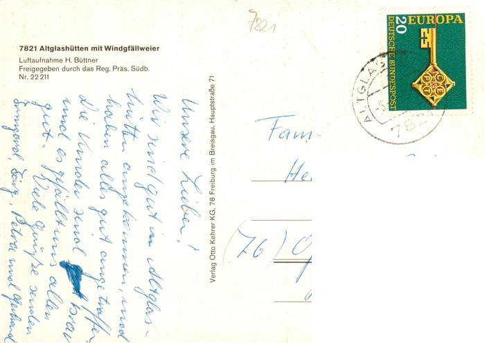 73908004 alte Postkarte Altglashuetten Fliegeraufnahme mit Windgfaellweiher postalisch gelaufen Erhaltung siehe scans [WerneD78] KatCode: 11110008315037