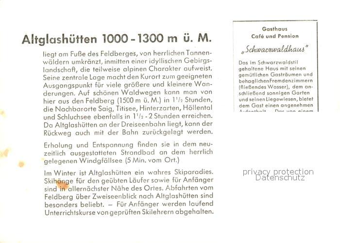 73648905 Altglashuetten Gasthaus Cafe Pension Schwarzwaldhaus Panorama Schwarzwald postalisch nicht gelaufen Werbekarte (keine Postkarte) Erhaltung siehe scans [FriedD77] KatCode: 11110008315037