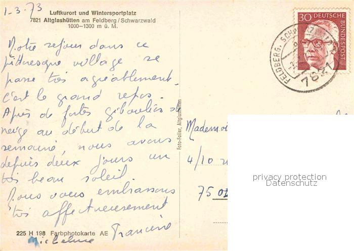 72725493 alte Postkarte Altglashuetten Winterpanorama Luftkurort Wintersportplatz Schwarzwald postalisch gelaufen Erhaltung siehe scans [FriedD77] KatCode: 11110008315037
