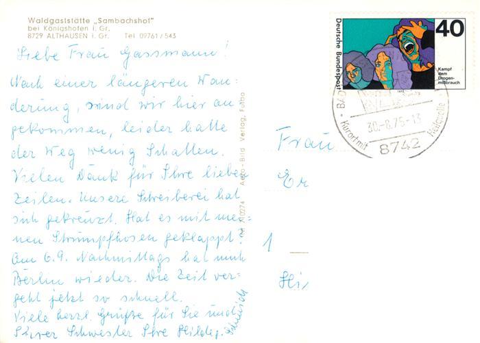 73902970 alte Postkarte Althausen Grabfeld Waldgaststaette Sambachshof Terrasse postalisch gelaufen Erhaltung siehe scans [WerneD78] KatCode: 11110009673141