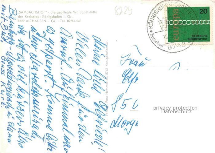 74054418 alte Postkarte Althausen Grabfeld Weingaststaette Sambachshof Gastraum Terrasse postalisch gelaufen Erhaltung siehe scans [WerneD78] KatCode: 11110009673141