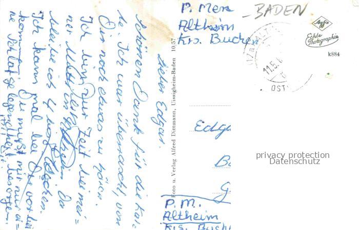 74104529 alte Postkarte Altheim Baden Buchen Wallduern Neckar-Odenwald-Kreis BW Panorama Kirche Rathaus postalisch gelaufen Erhaltung siehe scans [FriedD77] KatCode: 11110008225109