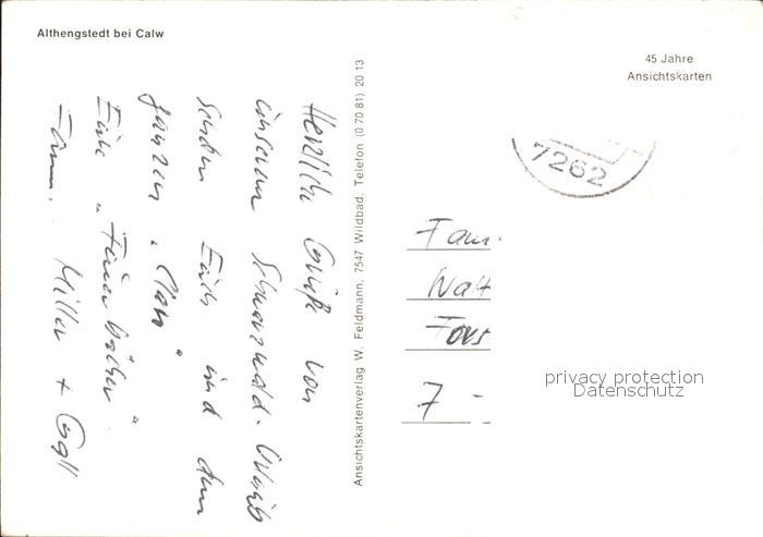 72109480 alte Postkarte Althengstett Fliegeraufnahme postalisch gelaufen Erhaltung siehe scans KatCode: 11110008235007