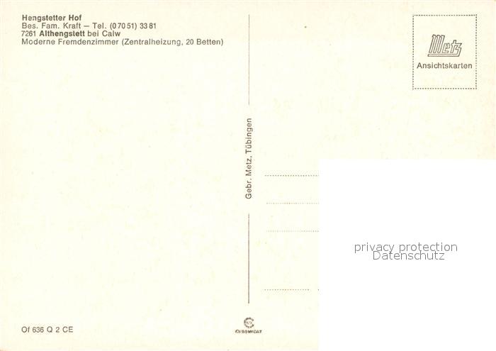 73730765 Althengstett Hengstetter Hof Hotel Restaurant postalisch nicht gelaufen Erhaltung siehe scans [FriedD77] KatCode: 11110008235007