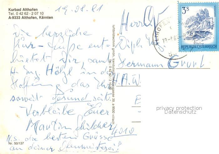 73286805 alte Postkarte Althofen Fliegeraufnahme Kurbad postalisch gelaufen Erhaltung siehe scans [KathaD81] KatCode: 11390213020501