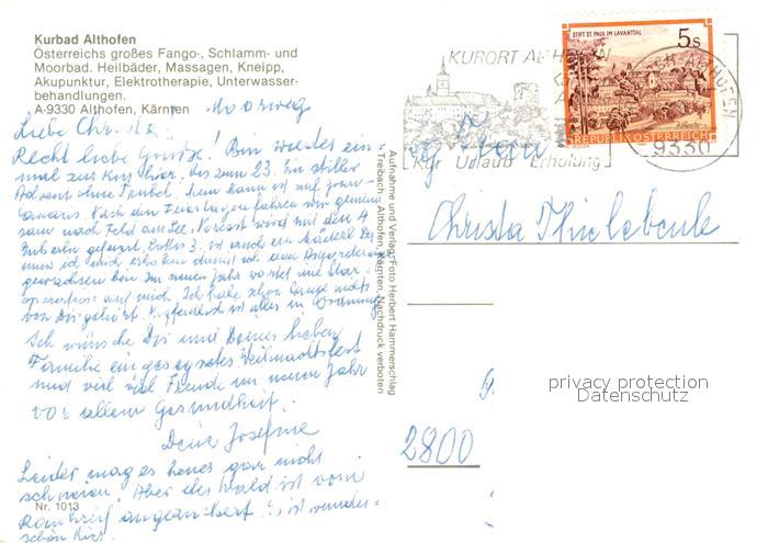 73061206 alte Postkarte Althofen Kurbad Hotels Ortsansicht mit Kirche postalisch gelaufen Erhaltung siehe scans [FriedD77] KatCode: 11390213020501