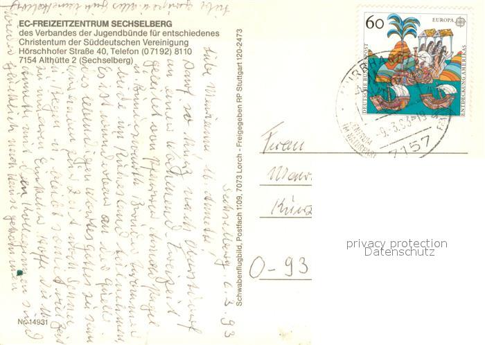 73663722 alte Postkarte Althuette Wuerttemberg Fliegeraufnahme EC-Freizeitzentrum Sechselberg postalisch gelaufen Erhaltung siehe scans [LiesaD40] KatCode: 11110008119004