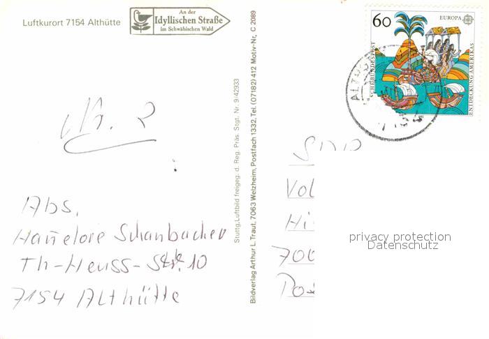 72751108 alte Postkarte Althuette Wuerttemberg Luftkurort Fliegeraufnahme postalisch gelaufen Erhaltung siehe scans [FriedD77] KatCode: 11110008119004