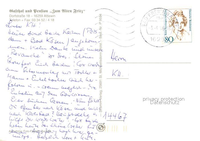 73643873 alte Postkarte Altlewin Gasthof Pension Zum alten Fritz postalisch gelaufen Erhaltung siehe scans [FriedD77] KatCode: 11110012064365
