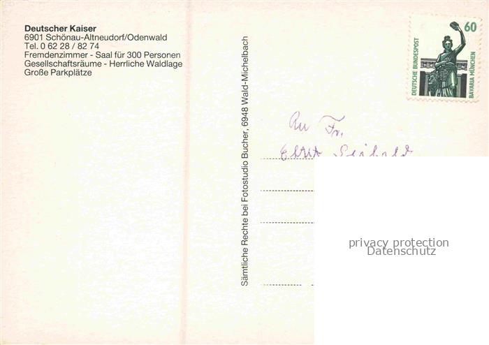 74048505 alte Postkarte Altneudorf Schoenau Heidelberg BW Deutscher Kaiser postalisch gelaufen Erhaltung siehe scans [WerneD78] KatCode: 11110008226080