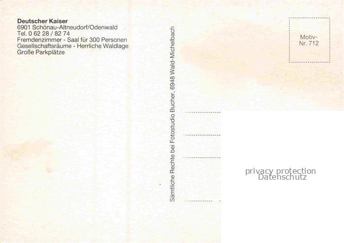 74048717 Altneudorf Schoenau Heidelberg BW Deutscher Kaiser Gasthof postalisch nicht gelaufen Erhaltung siehe scans [WerneD78] KatCode: 11110008226080