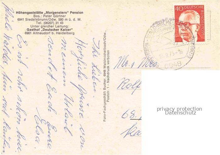 74048214 alte Postkarte Altneudorf Schoenau Heidelberg BW Hoehengaststaette Morgenstern Pension Gastraum Panorama postalisch gelaufen Erhaltung siehe scans [FriedD77] KatCode: 11110008226080