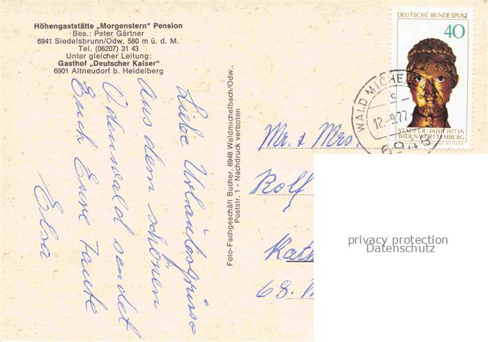 74048213 alte Postkarte Altneudorf Schoenau Heidelberg BW Hoehengaststaette Morgenstern Pension Gastraum Panorama postalisch gelaufen Erhaltung siehe scans [FriedD77] KatCode: 11110008226080