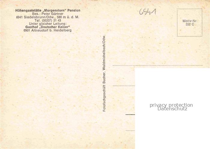 74048203 Altneudorf Schoenau Heidelberg BW Hoehengaststaette Morgenstern Pension Minigolf Tierpark Kirche postalisch nicht gelaufen Erhaltung siehe scans [FriedD77] KatCode: 11110008226080