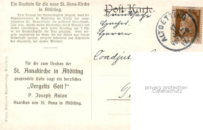 43368457 ALToeTTING Bayern Neue St Annakirche postalisch gelaufen Erhaltung siehe scans [WerneD78] alte Postkarte Wern Katcode 11110009171111