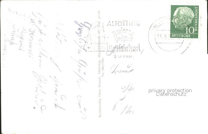 71912960 alte Postkarte Altoetting Gesamtansicht Gnadenbild Goldenes Roessel Kirche Bruder Konrad Basilika postalisch gelaufen Erhaltung siehe scans KatCode: 11110009171111