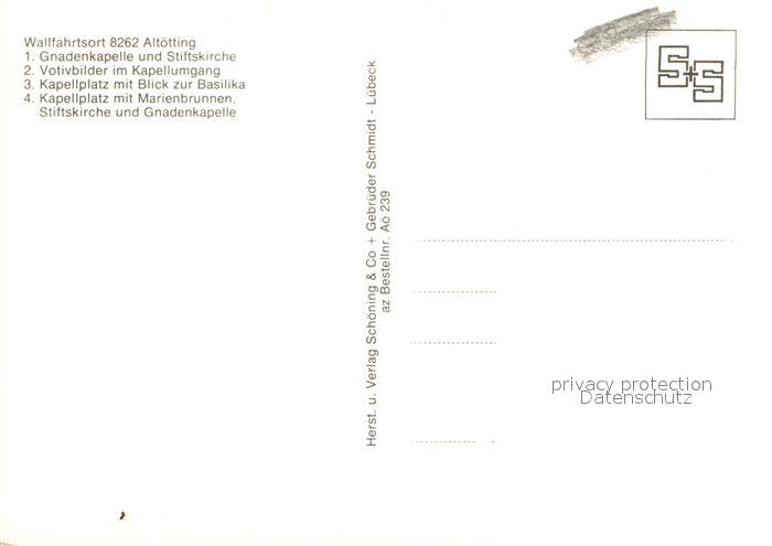 72928599 alte Postkarte Altoetting Gnadenkapelle Stiftskirche Votivbilder Kapellumgang Kapellplatz Basilika Marienbrunnen postalisch gelaufen Erhaltung siehe scans [WerneD78] KatCode: 11110009171111