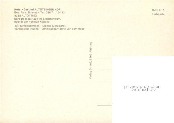 73089036 Altoetting Hotel-Gasthof Altoettinger Hof postalisch nicht gelaufen Erhaltung siehe scans [PaolaD17] KatCode: 11110009171111
